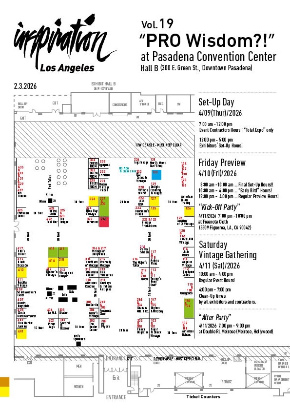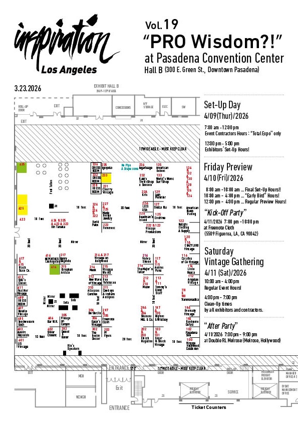 The two-day show brings together over international vendors and exhibitors offering unique and one-of-a-kind merchandise on exhibit and for sale—including American vintage apparel manufactured from the 1900s-1980s, vintage-inspired-to-contemporary fashions and accessories from boutique and corporate American and Japanese companies, surf and skate exhibitors, plus artists and artisans, hot-rods, antiques, records and audio equipement, as well as live music.